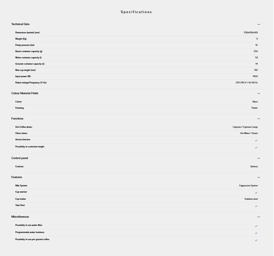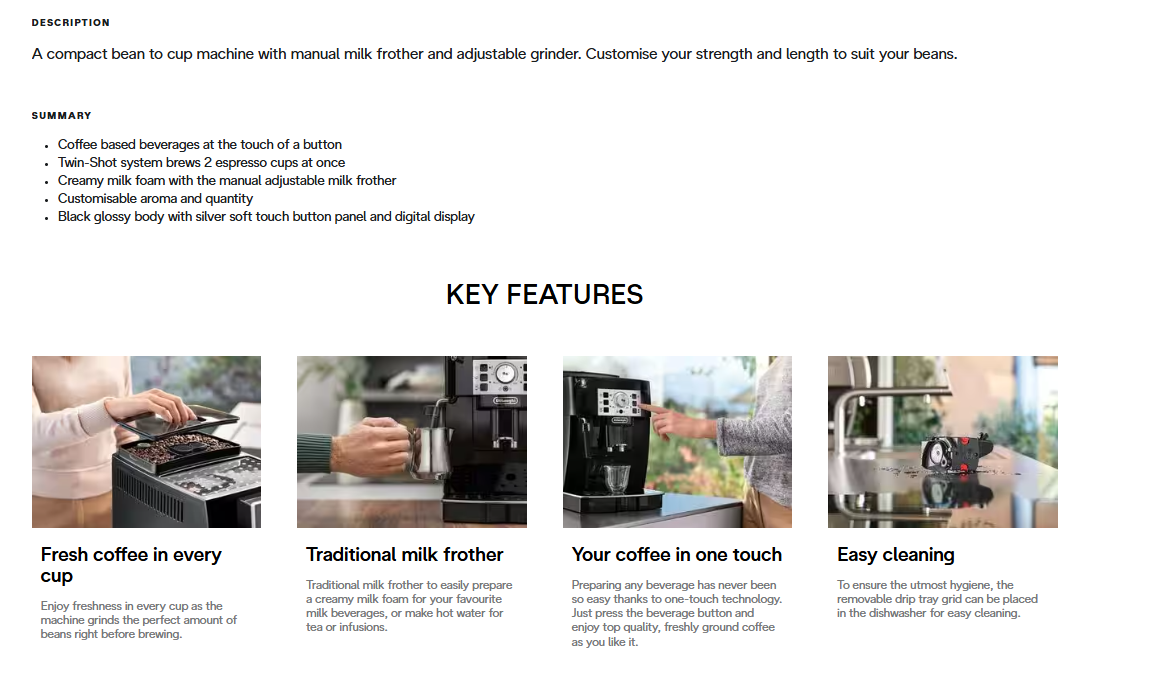 A compact bean to cup machine with manual milk frother and adjustable grinder. Customise your strength and length to suit your beans.