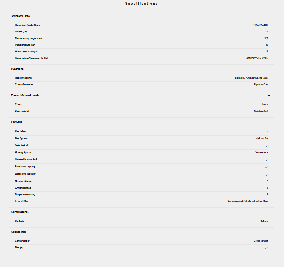 Live the barista experience at home using the full accessories kit, including the Dosing and Tamping Guide to prevent grounds from falling outside the portafilter