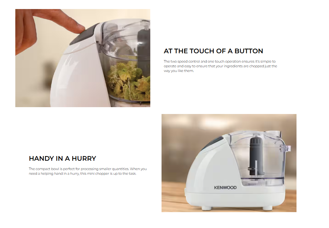 Perfect for SMALL quantites. Our best selling mini chopper, this compact appliance is a staple in homes around the world. Quickly and effortlessly prepare small quantities; make dips and sauces or whip up a delicious homemade salsa or guacamole.