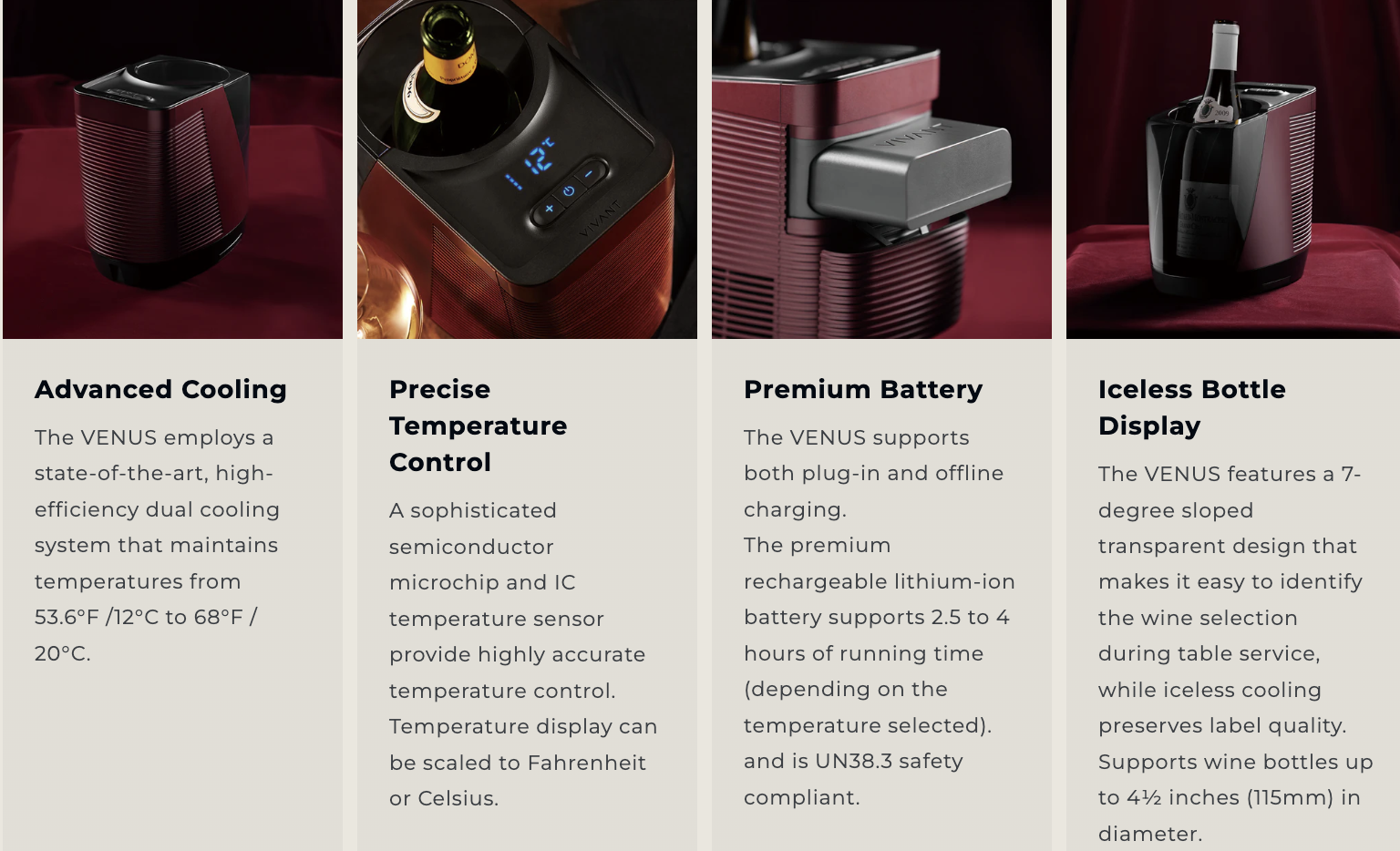 No more melting ice buckets — Venus preserves your bottle at the perfect temperature while displaying it with sleek sophistication, doubling as a decorative centerpiece.